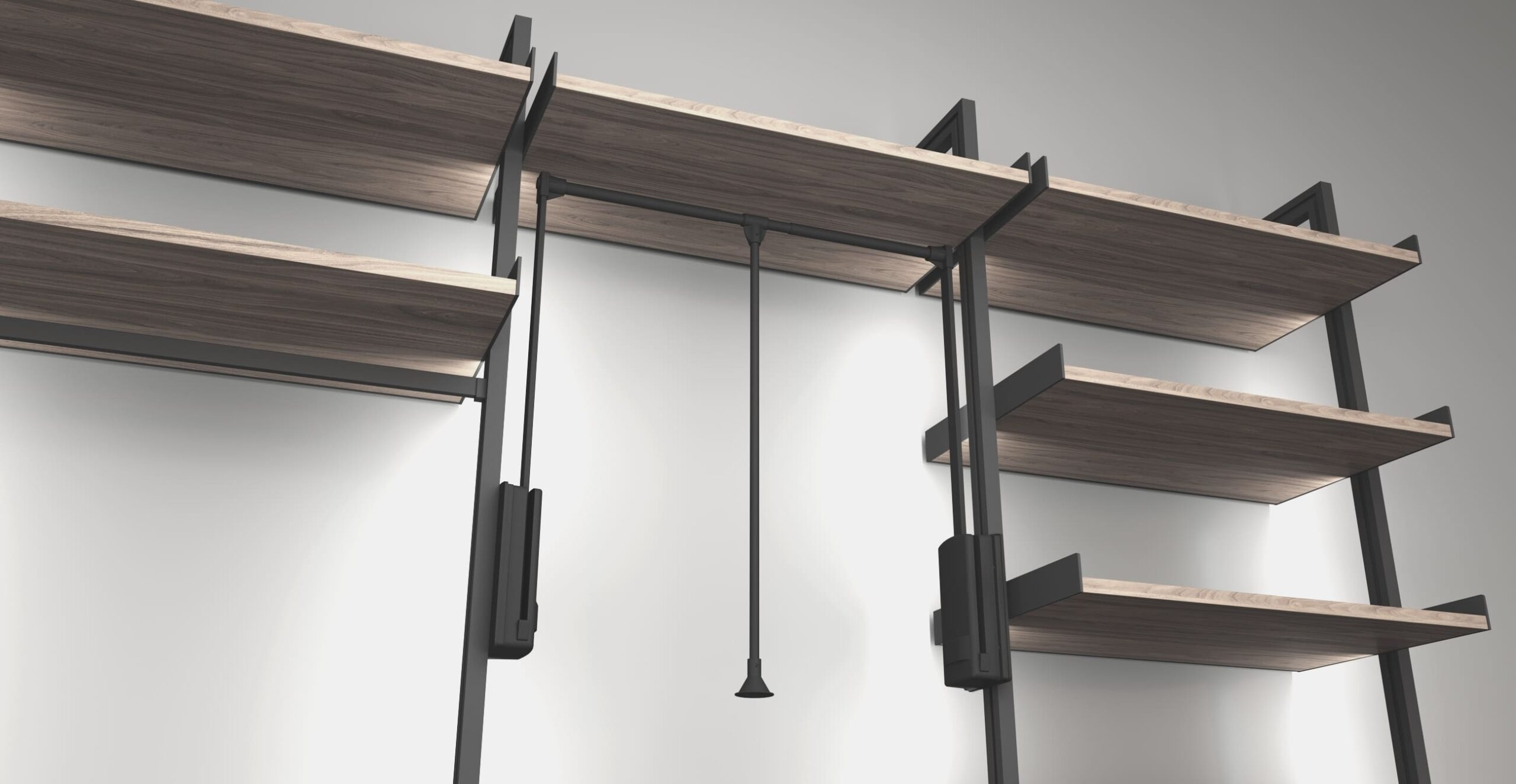 на основе Гардеробной системы ARISTO – сетчатые стальные полки и корзины. Внутреннее наполнение шкафа мы адаптируем под ваши пожелания: оснастим выдвижными корзинами, брючницами, обувницами, стационарными полками, штангами.