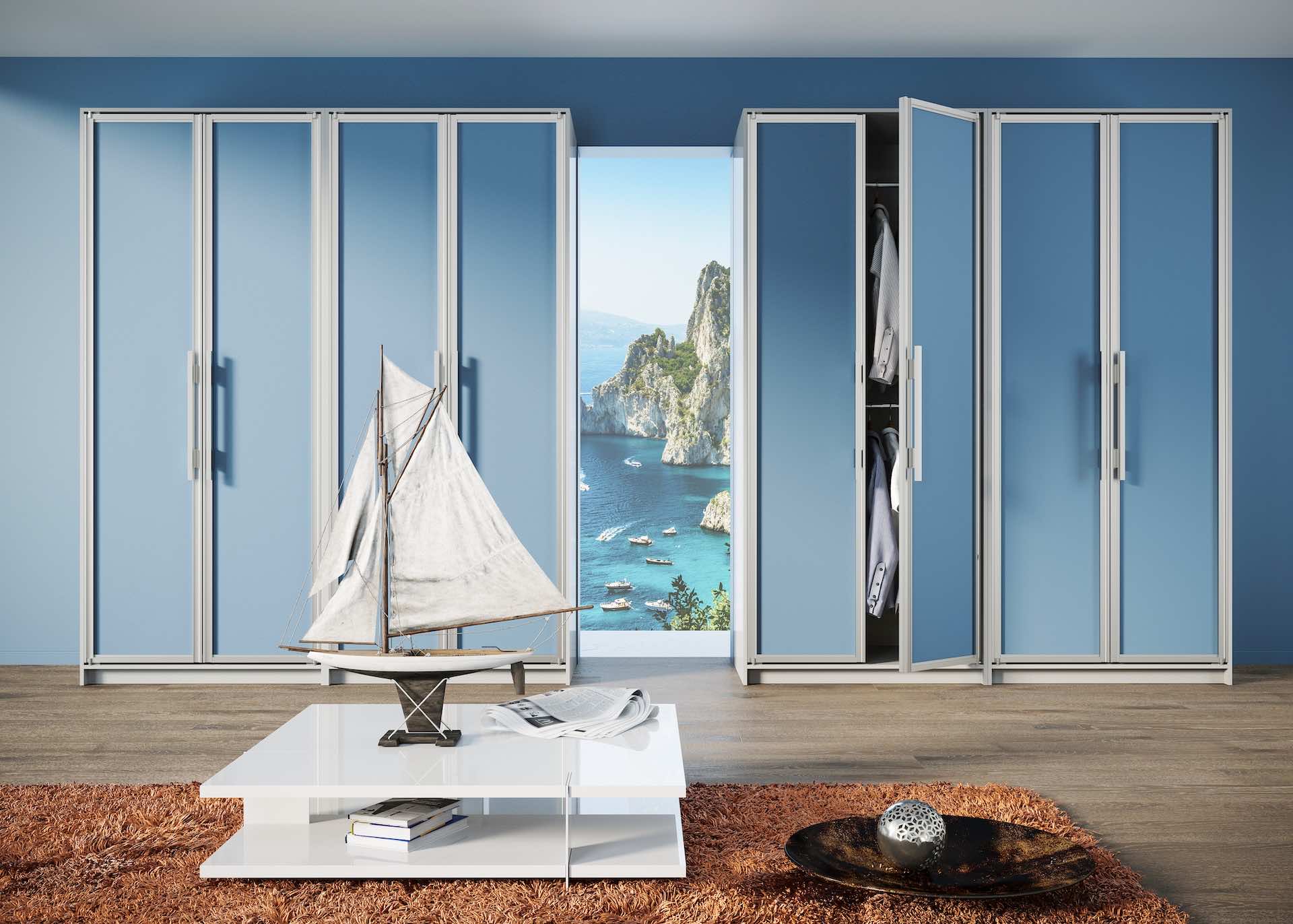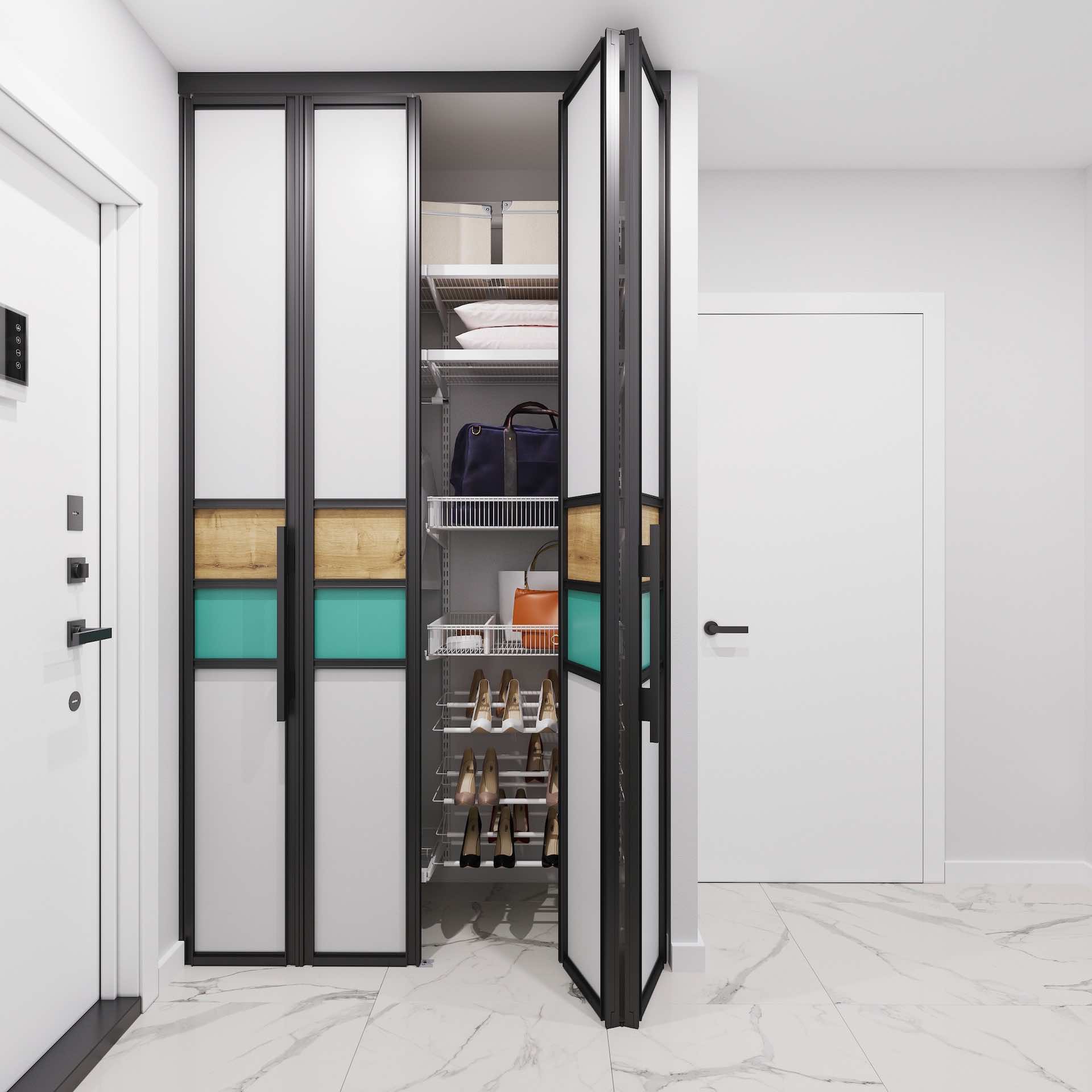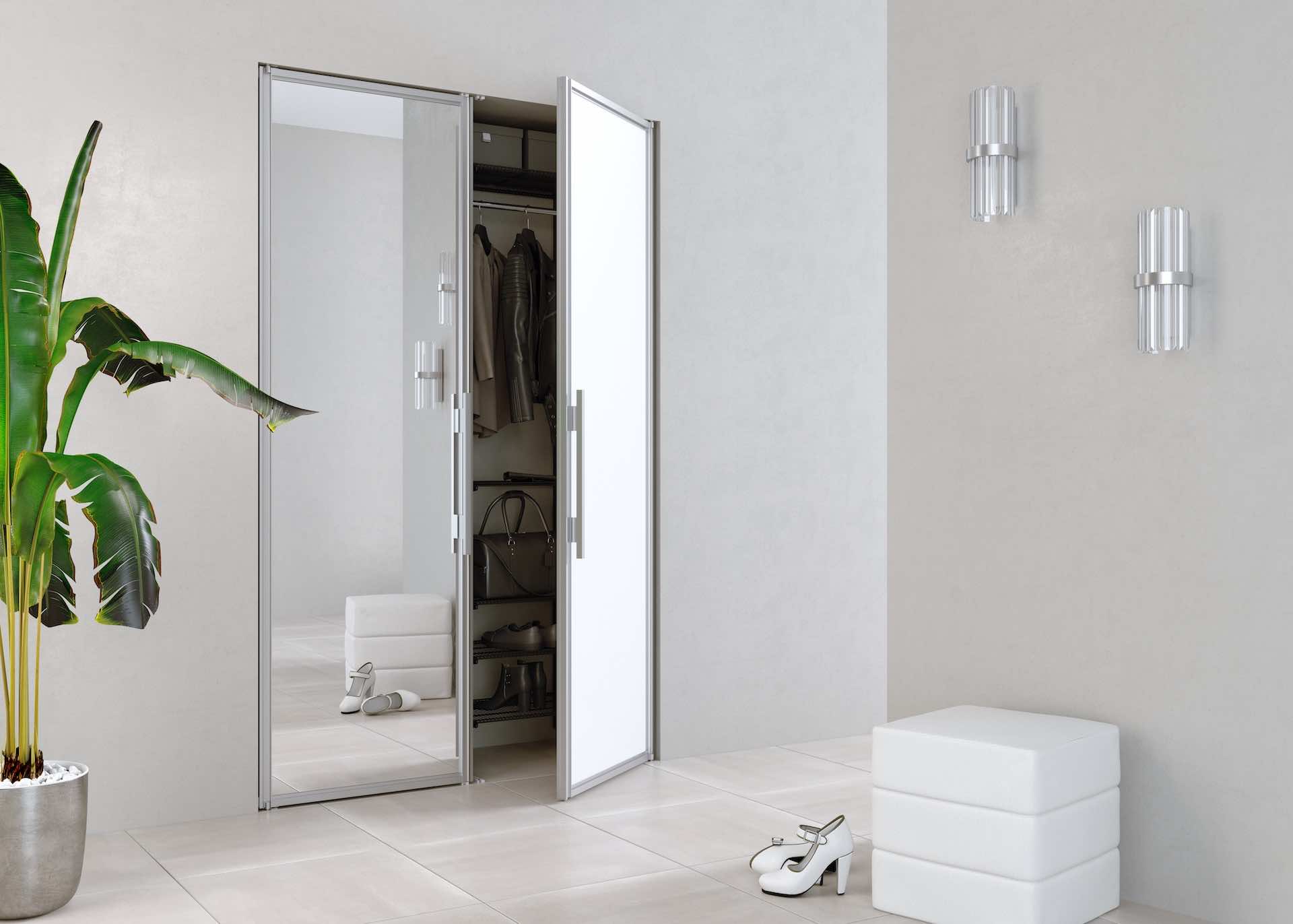 Раздвижные перегородки ARISTO часто используются как двери в гардеробные комнаты и системы хранения, позволяя аккуратно закрывать пространство без распашных полотен и экономить полезную площадь.