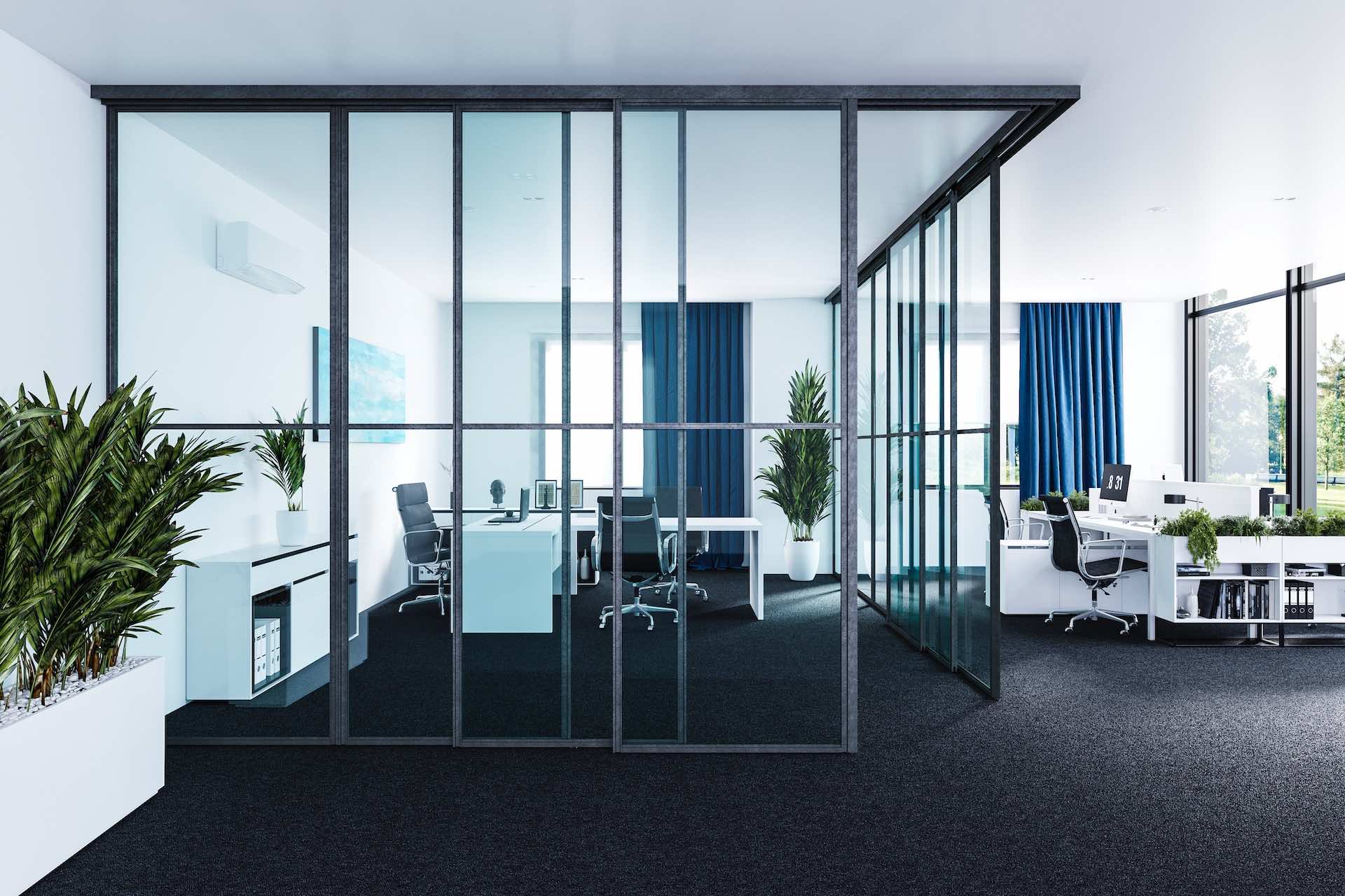 Системы ARISTO позволяют создавать как лёгкие дверные полотна, так и полноразмерные раздвижные перегородки с несколькими створками, включая линейные и угловые конфигурации.